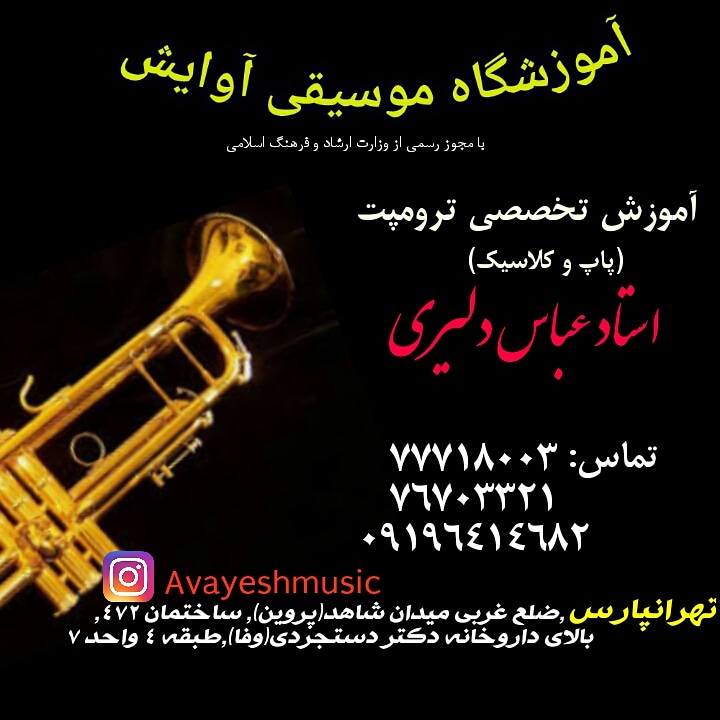 آموزش تخصصی ترومپت سبک کلاسیک و پاپ و سایدرام (طبل ریز) فراگیری ریتمهای حماسی...محرمی...کلاسیک توسط استاد برجسته عباس دلیری در آموزشگاه موسیقی آوایش آدرس: تهرانپارس, ضلع غربی میدان پروین ساختمان 472 بالای داروخانه دکتر دستجردی طبقه 4 واحد 7 ☎️77718003-76703321